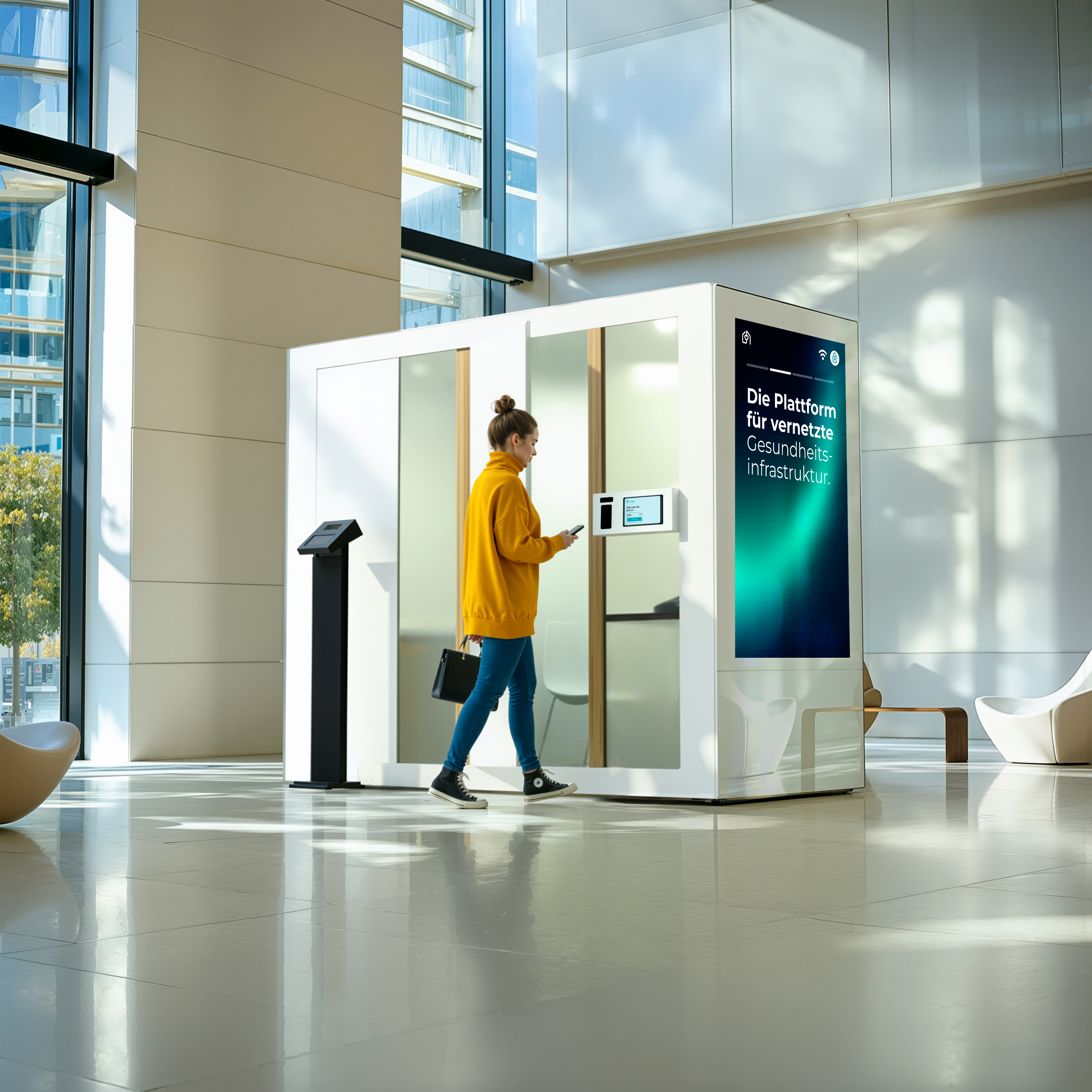Eine Plattform, die Raum und Technologie für Gesundheitsservices modular verbindet. Regulatorisch eingebunden, mit TI-Anbindung und an jeden Bedarf anpassbar.