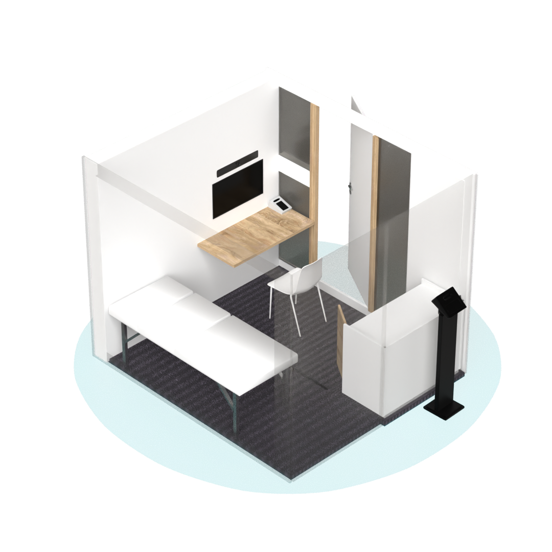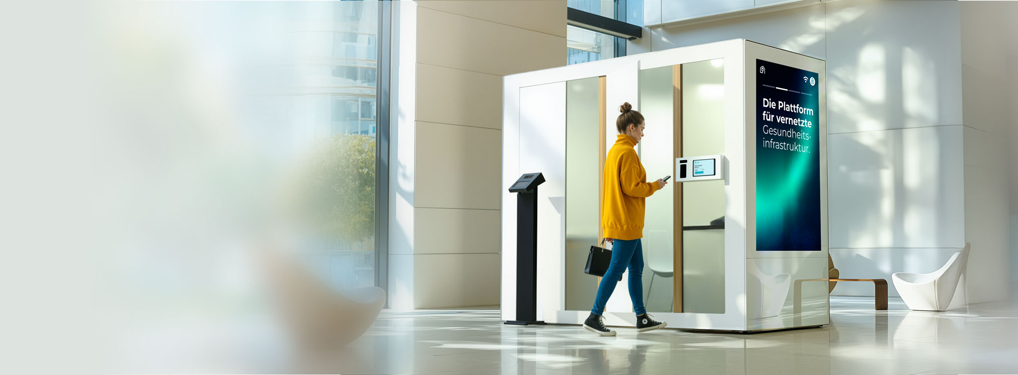 Eine Plattform, die Raum und Technologie für Gesundheitsservices modular verbindet. Regulatorisch eingebunden, mit TI-Anbindung und an jeden Bedarf anpassbar.